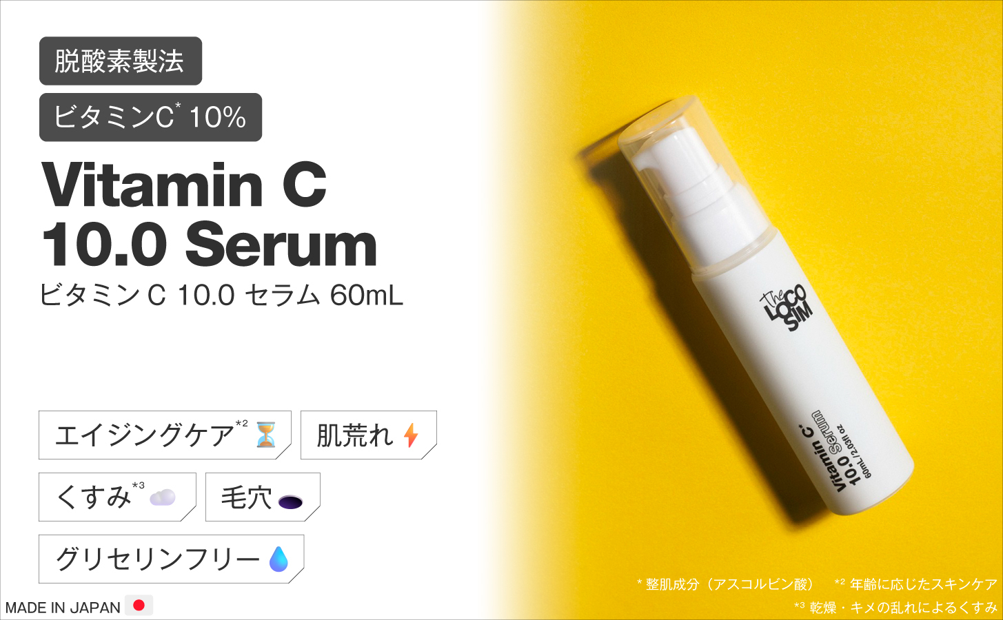 ヒーロー成分「Vitamin C / ビタミンC*¹」10%配合。エイジングケア*²美容液