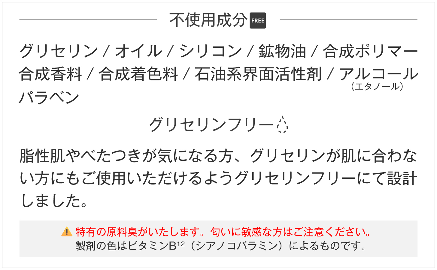 不使用成分 / グリセリンフリー