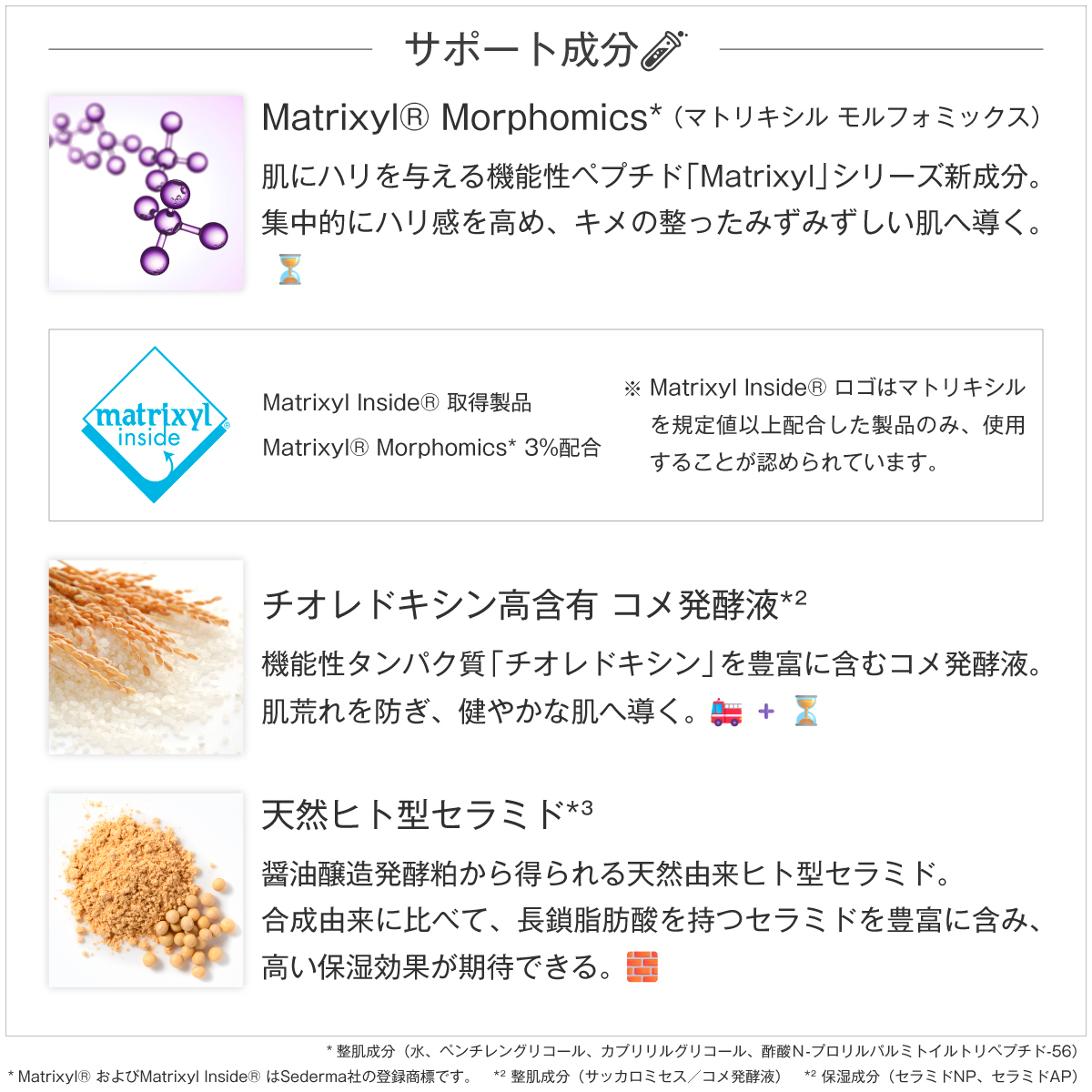 *¹ 整肌成分(水、ペンチレングリコール、カプリリルグリコール、酢酸N-プロリルパルミトイルトリペプチド-56) Matrixyl® およびMatrixyl Inside® はSederma社の登録商標です。