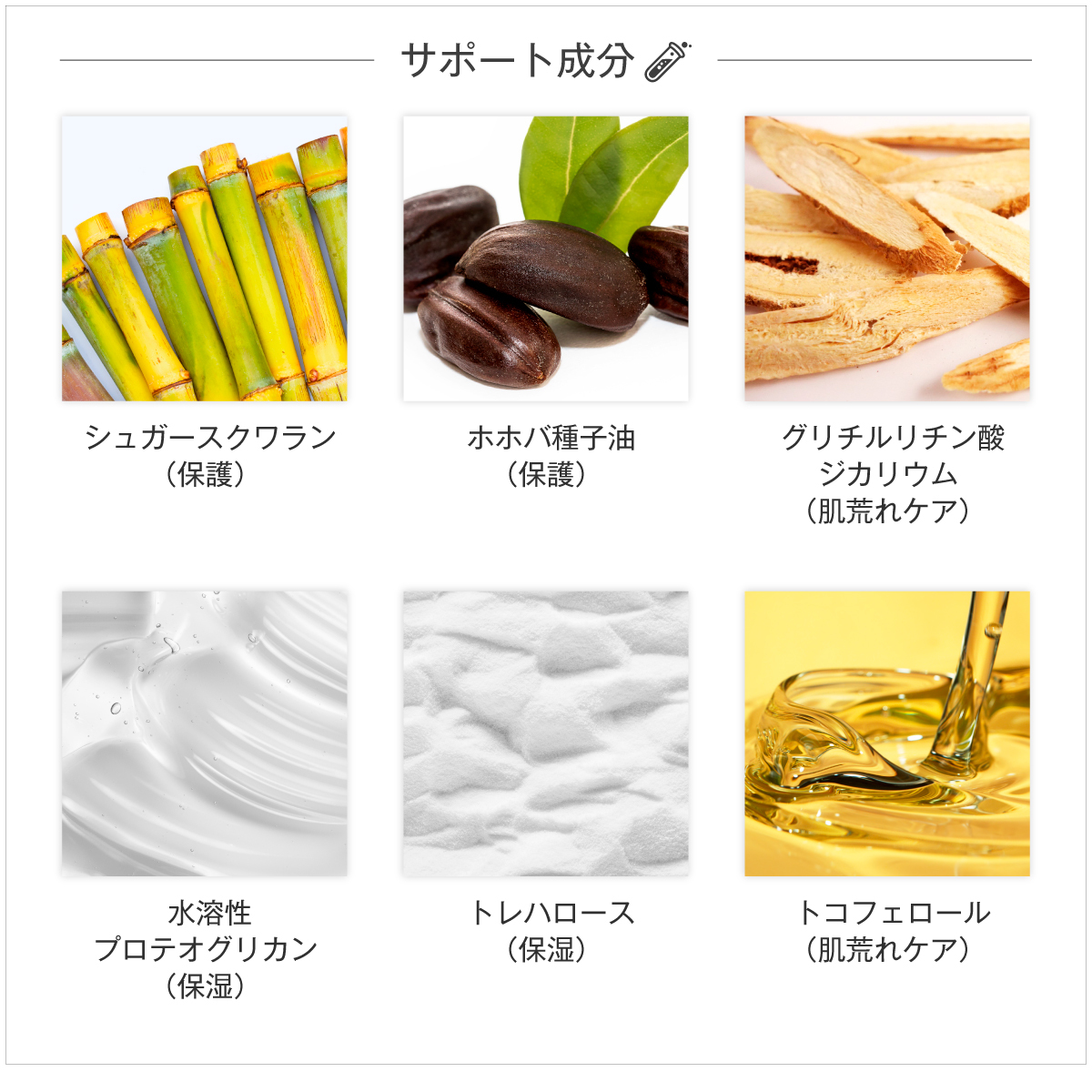 *¹ 整肌成分(ジメチルイソソルバイド、レチノイン酸ヒドロキシピナコロン)Granactive Retinoid® はGrant Industries, Inc.の登録商標です。 *² 年齢に応じたスキンケア