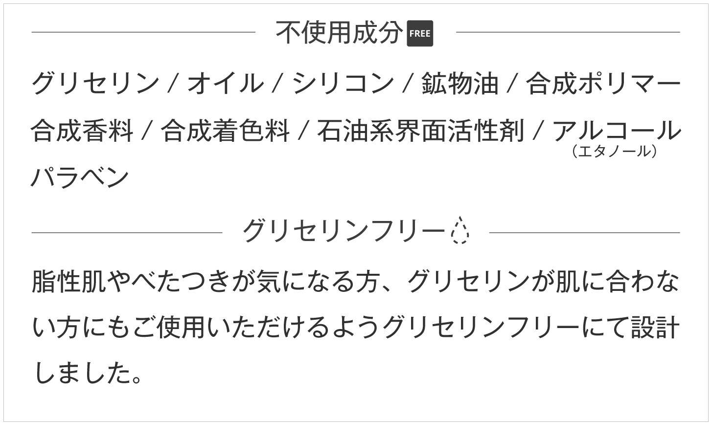 不使用成分 / グリセリンフリー