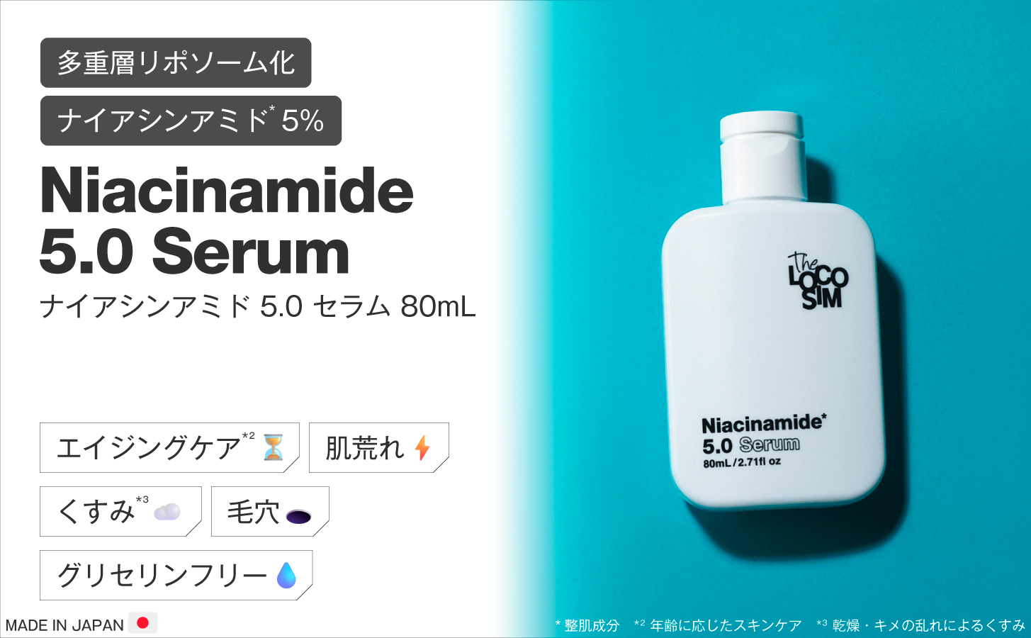 ヒーロー成分「Niacinamide / ナイアシンアミド*¹」5%配合。エイジングケア*²美容液